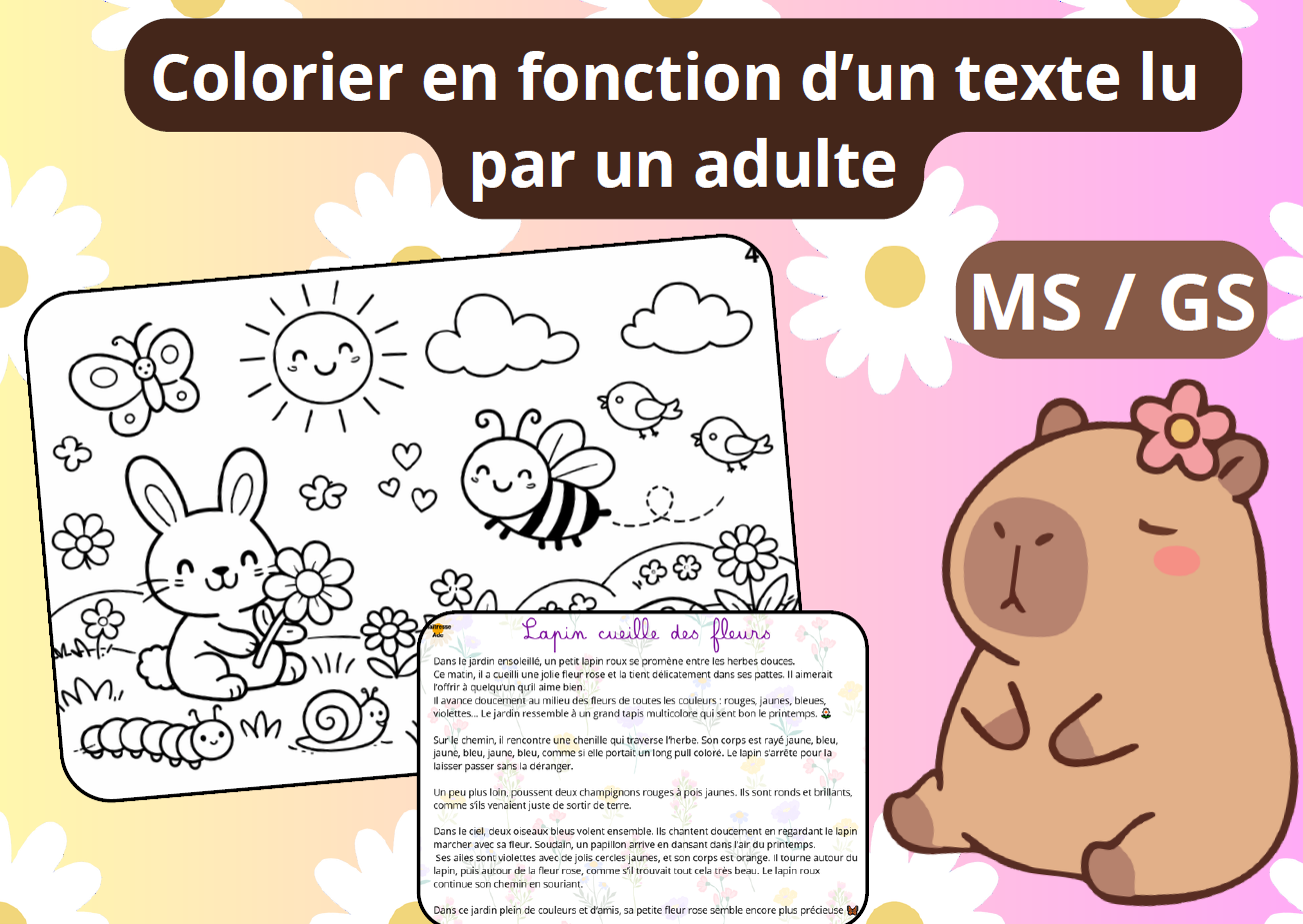 🌼Je lis, tu dessines & colories– Compréhension orale printemps MS GS CP