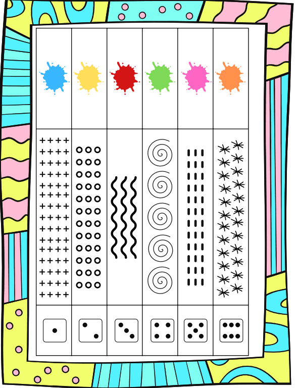 Les élèves complètent les cas avec différents graphismes (points, vagues, spirales, traits…) pour décorer l’image.