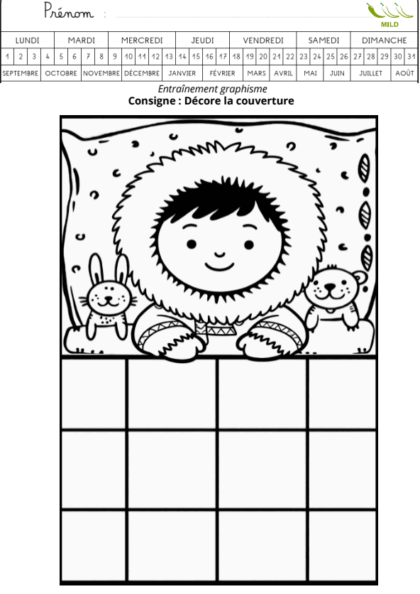 Des fiches de graphisme progressifs pour entraîner les gestes et motifs tout en décorant une scène banquise 🐧❄️