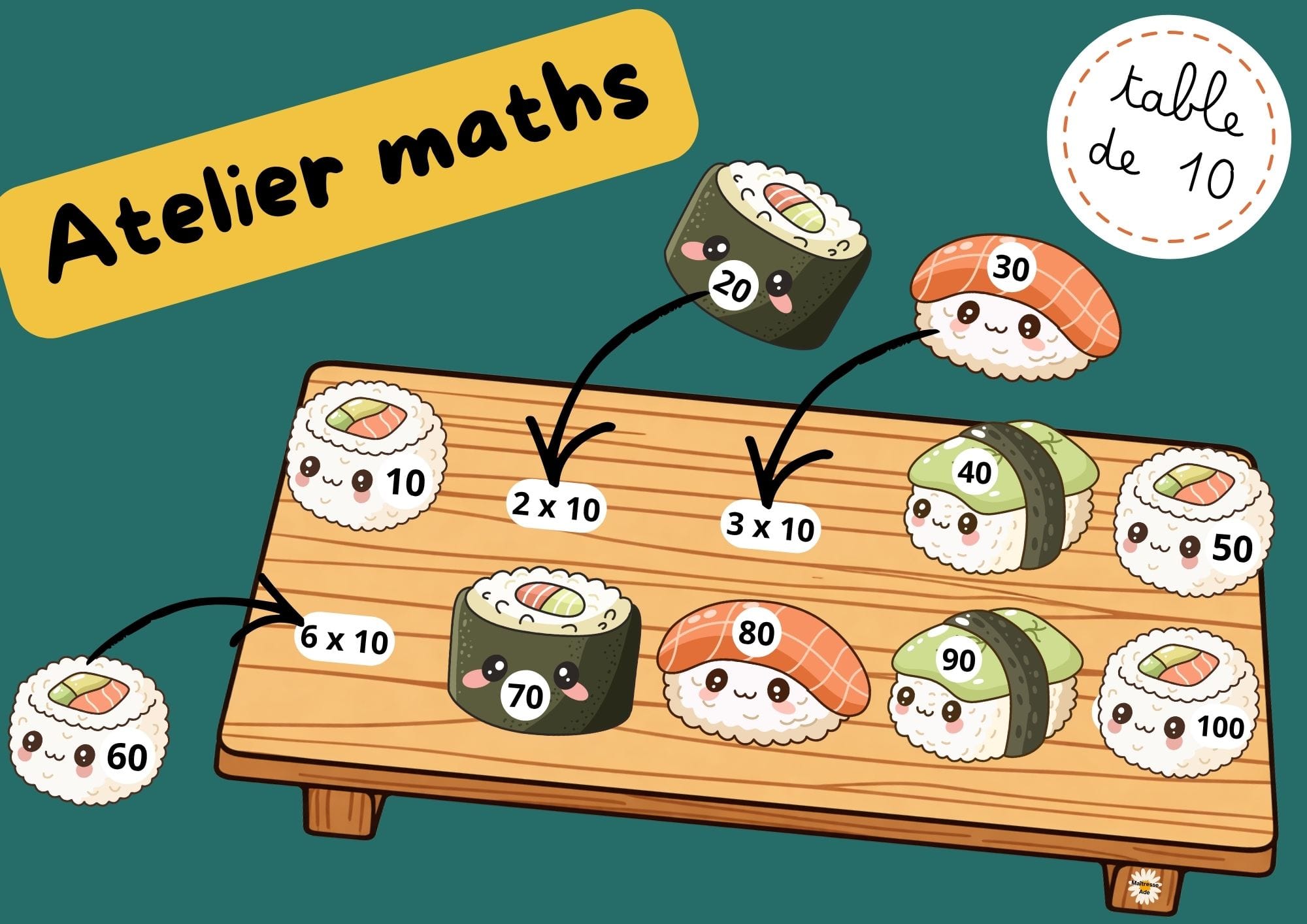🍣 Table de 10 : planche de sushis - Format prêt à imprimer