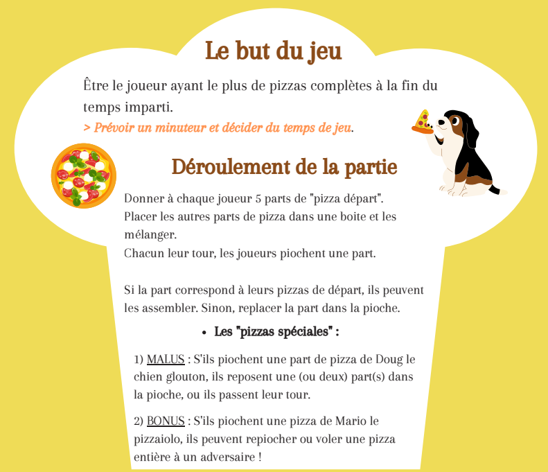 ⏱️ Fin de partie au temps défini : le joueur avec le plus de pizzas complètes gagne.