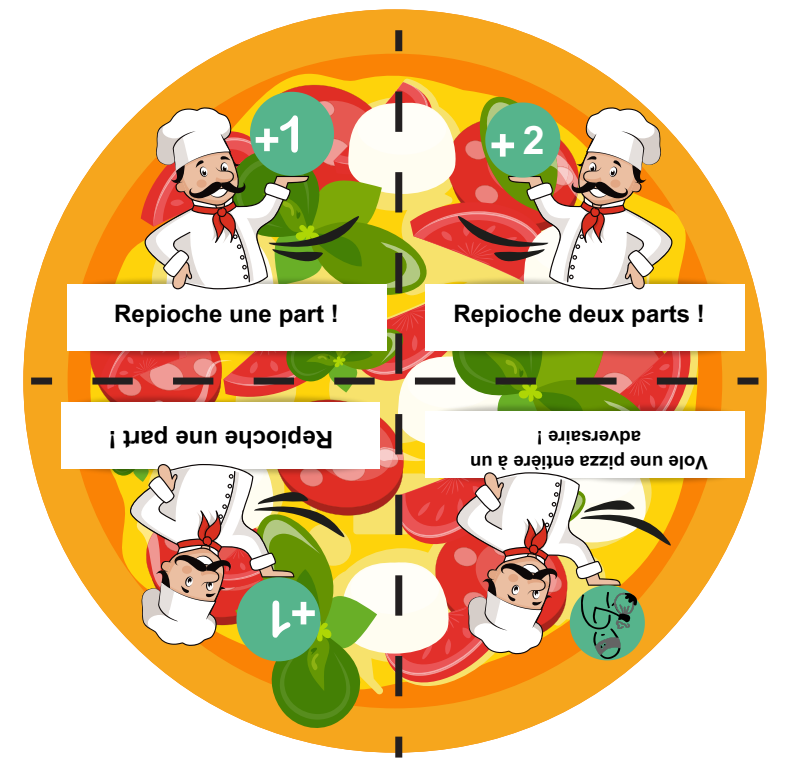 Chaque joueur reçoit 5 parts « pizza départ ».