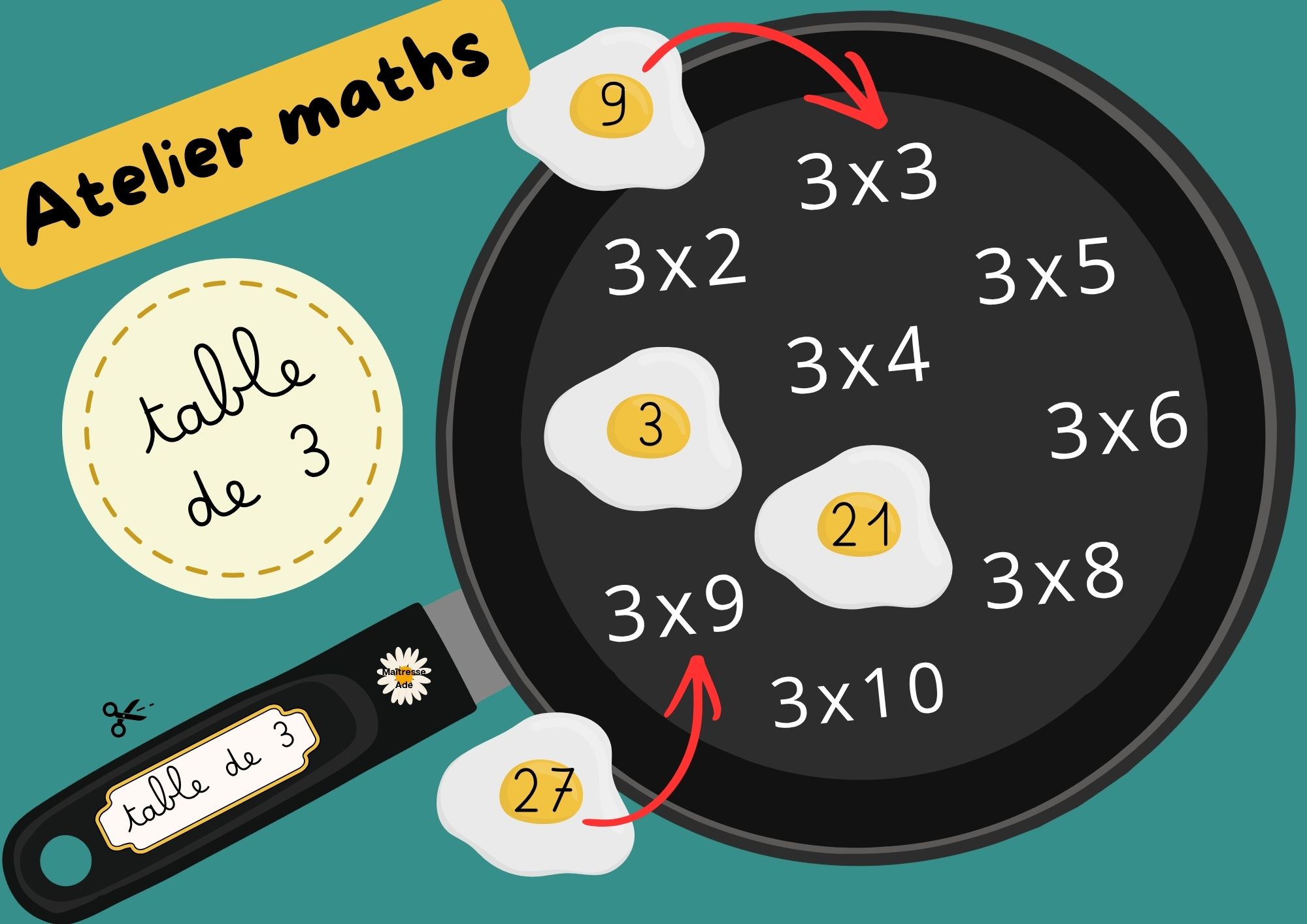 🍳 Table de 3 : poêle avec œufs au plat